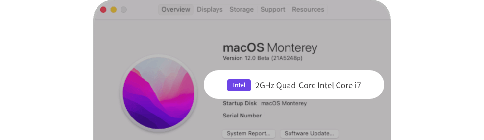 點選左上角Apple選單-點選【關於本機】,進入【概述】頁面的【處理器】,檢查晶片類型是“Intel”還是“Apple”